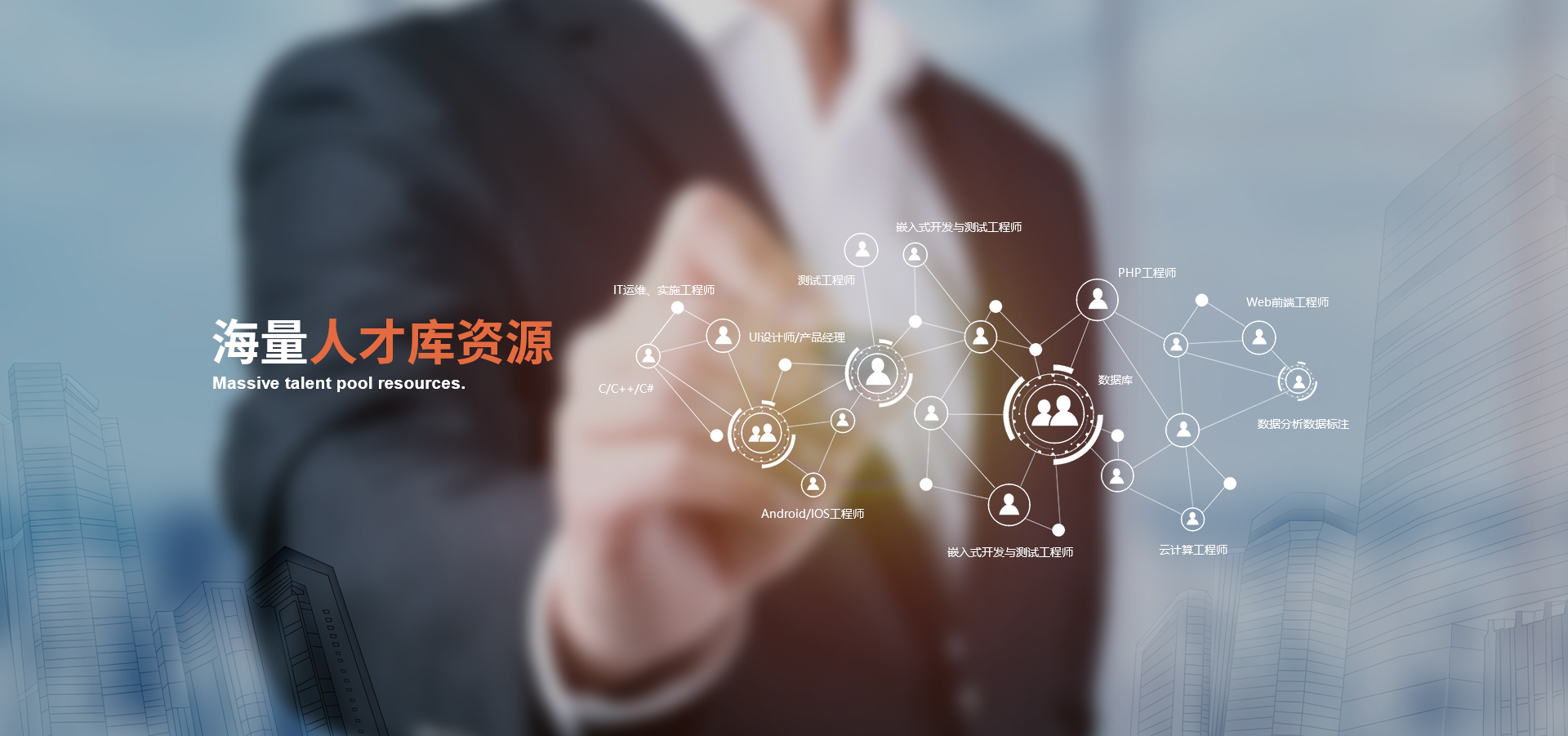 擁有超10萬以上的人才儲(chǔ)備;包括專家級(jí)、、資深級(jí)、高級(jí)、中級(jí)等各技術(shù)崗位,能滿足客戶快速用人的需求